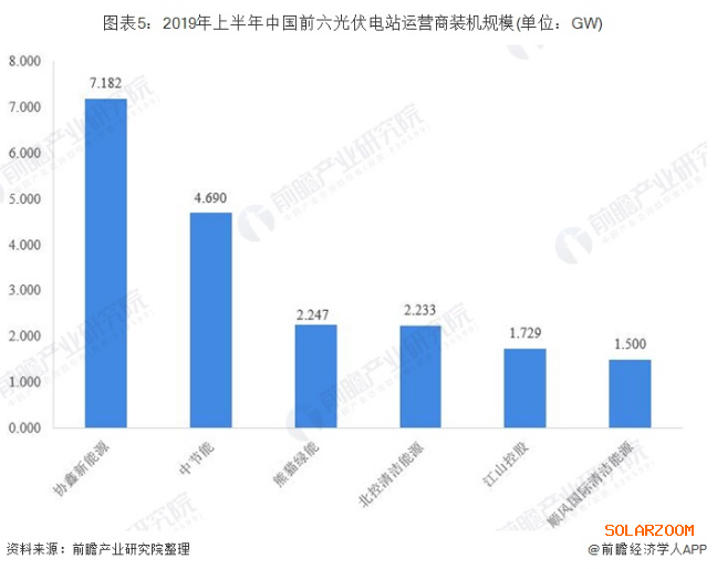 隨著531光伏新政的實施,光伏行業相關企業,尤其是光伏電站建設及運營企業發展受阻,部分民企開始通過出售資產方式以求“自救”,國內電站資產持有方亦開始逐漸轉移向資金實力雄厚的國企。截至2019年上半年,協鑫新能源以7.182GW的裝機規模排名第一;中節能和熊貓綠能緊隨其后,裝機規模分別為4.69GW和2.247GW。